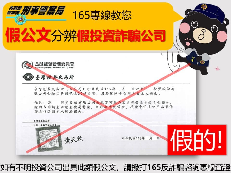 ?近期詐團以假冒金管會或臺灣證券交易所公文行假投資詐騙