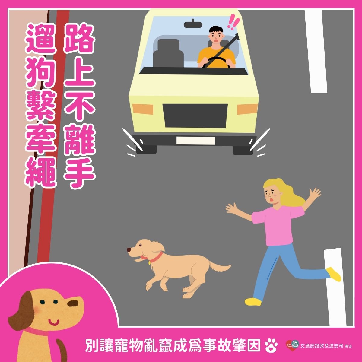 【交通安全宣導】遛狗繫繩 上路牽緊