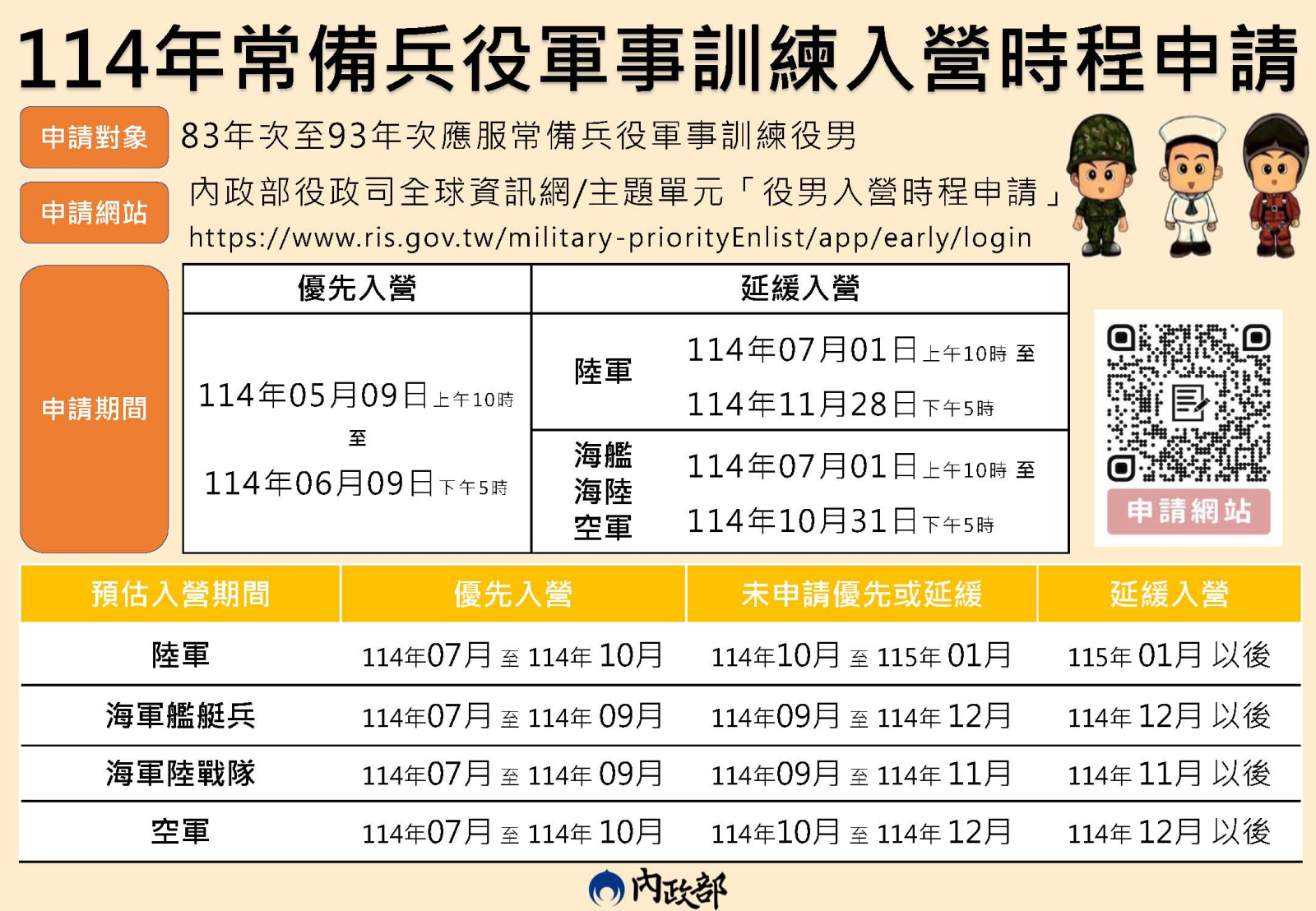 ?申請對象:83年次至93年次應服常備兵役軍事訓練役男
