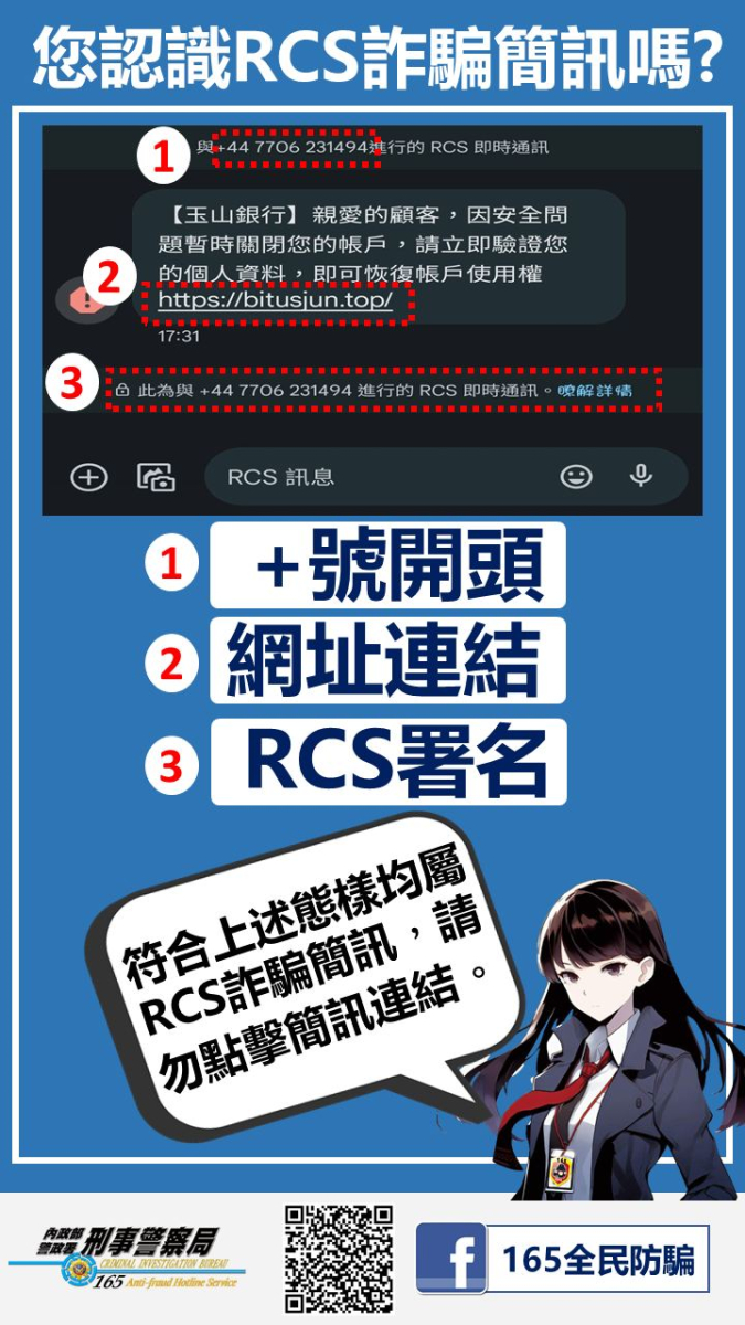 1️⃣+號開頭 2️⃣網址連結 3️⃣RCS署名