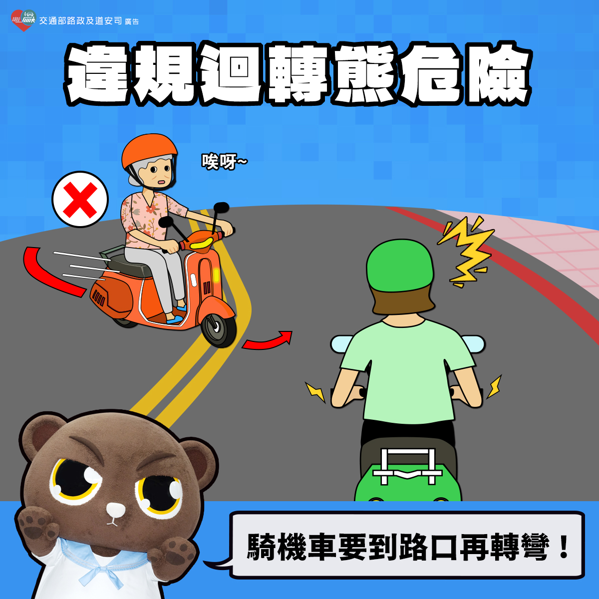 【交通安全宣導】違規迴轉熊危險 騎機車要....